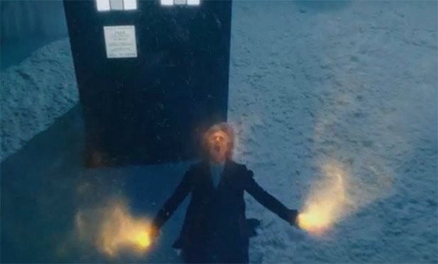 Then there is that opening sequence. The Doctor emerges from the TARDIS, in obvious distress, only to fall to his knees and start to regenerate. Except it’s in the snow. It may even be at the South Pole. Could it even be 1986?